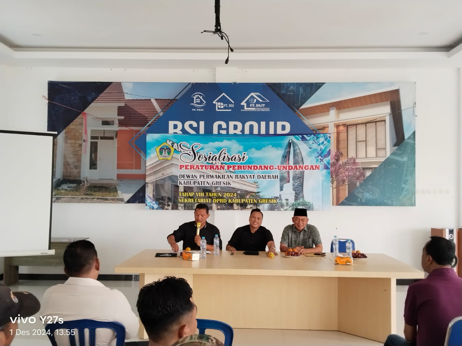 Sosialisasi ini dilakukan oleh Wakil Ketua DPRD Ahmad Nurhamim, S.Pi., M.Si., dan anggota DPRD Syaikhu Busiri, S.Kom, SH. Sebagai narasumber, hadir Kepala Bagian Hukum Pemerintah Kabupaten Gresik, Mohammad Rum Pramudya, SH.