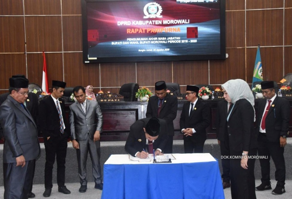 Reportika || Kab Morowali – Dewan Perwakilan Rakyat Daerah (DPRD) Kabupaten Morowali menggelar rapat paripurna dengan agenda Pengumuman Akhir Masa Jabatan Bupati dan Wakil Bupati Morowali Periode 2018-2023, Jumat (25/8/2023).