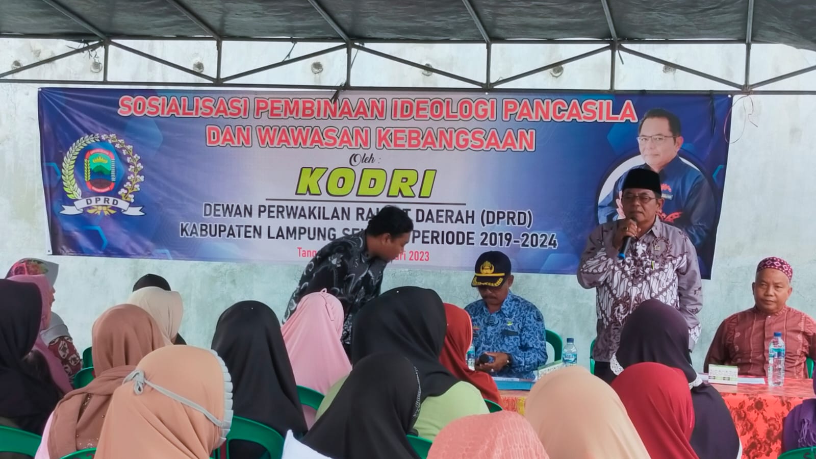 Reportika.co.id || Sragi, Lampung Selatan – Anggota Dewan Perwakilan Rakyat Daerah (DPRD) Kabupaten Lampung Selatan dari Fraksi Partai Demokrat, Kodri menggelar Sosialisasi Pembinaan Ideologi Pancasila dan Wawasan Kebangsaan di dua Desa sekaligus di Kecamatan Sragi, Kamis 17/2/2023.