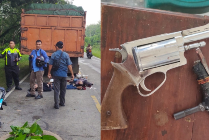 Saat pemeriksaan, petugas Polsek Tanjung Bintang menemukan sepucuk senjata api rakitan jenis Revolver warna silver, yang tergeletak di samping Fuso antara ban depan dan belakang sebelah kanan, tepat depan korban yang meninggal dunia.