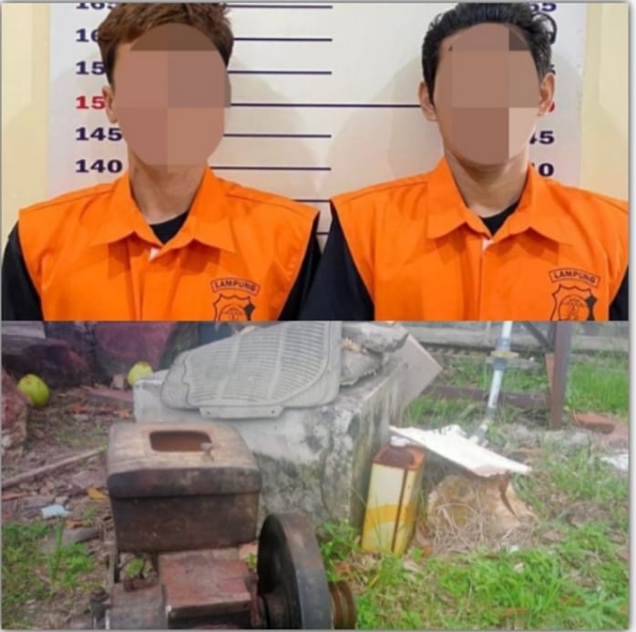 Reportika.co.id || Kalianda, Lampung Selatan – Tekab 308 Presisi Polres Lampung Selatan (Lamsel) bersama Unit Reskrim Polsek Kalianda, menangkap J (22) dan R (20) gegara membawa kabur mesin diesel, Senin kemarin (6/2/2023).