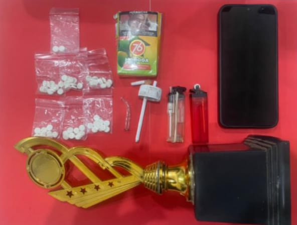 Pada saat dilakukan penggeledahan ditemukan narkoba jenis pil dobel L sebanyak 62 butir. Selain itu 1 pipet kaca kecil, 2 korek api, seperangkat alat bong, dan 1 ponsel.
