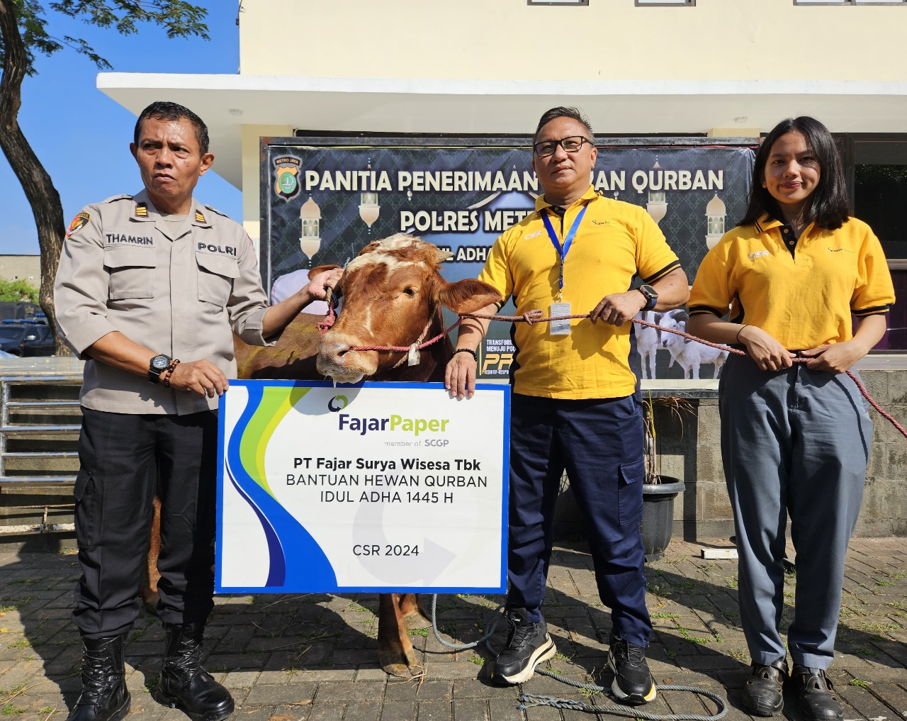 Reportika|| Kab Bekasi – Dalam rangka merayakan Idul Adha 1445 H, PT Fajar Surya Wisesa Tbk (FajarPaper), produsen kertas kemasan terkemuka yang merupakan anggota dari SCGP di Indonesia, menunjukkan kepedulian sosialnya dengan membagikan sekitar seratus hewan kurban yang didistribusikan ke berbagai dewan masjid dan musholla di instansi pemerintahan pusat, kabupaten daerah, dan masyarakat sekitar area perusahaan. Kegiatan ini merupakan bagian dari komitmen perusahaan untuk berkontribusi pada kesejahteraan masyarakat.