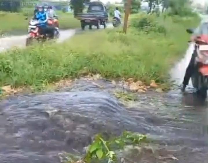 Pantauan di lokasi, debit air yang keluar dari pipa cukup besar sehingga menggenangi sebagian ruas jalan. Aliran air yang terus mengucur membuat kondisi jalan menjadi licin dan berpotensi membahayakan pengendara, khususnya roda dua.
