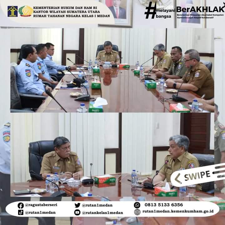 Reportika.co.id || Deli Serdang, Sumut – Kepala Rumah Tahanan negara kelas 1 Medan bersama kepala seksi pelayanan tahanan dan kepala sub seksi bimbingan kegiatan kerja hari ini melakukan audiensi dengan pemda deliserdang yang diterima oleh wakil Bupati Deli Serdang, HM. Ali Siregar.