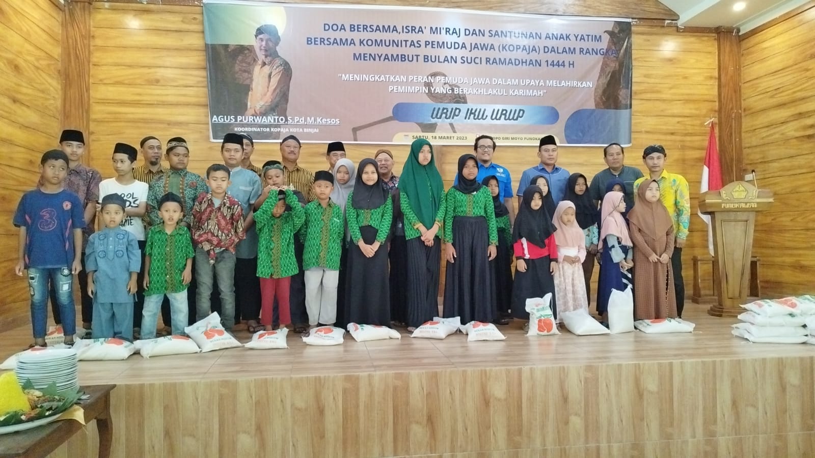 Reportika.co.id || Binjai, Sumut – Semarak menyambut bulan suci Ramadhan 1444 H, Komunitas Pemuda Jawa (KOPAJA) menggelar kegiatan punggahan, doa bersama, Isra Miraj sekaligus salurkan santunan kepada anak yatim bertempat di Aula Punokawan Binjai, Sabtu (18/3/2023).