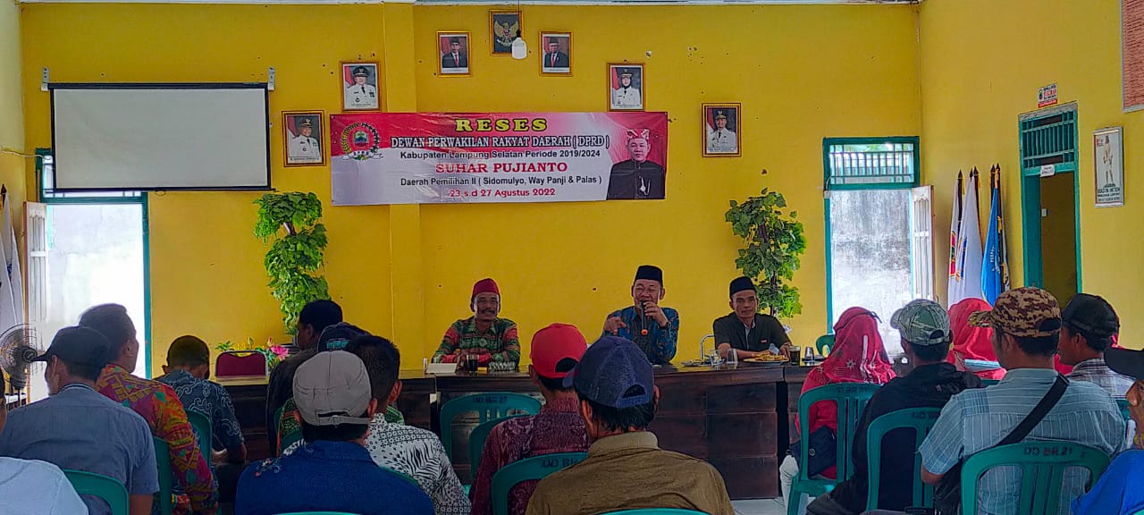 – Suhar Pujianto anggota DPRD fraksi PDI-P komisi lll lakukan Reses menampung aspirasi masyarakat Desa Bumirestu Kecamatan Palas Kabupaten Lampung Selatan.