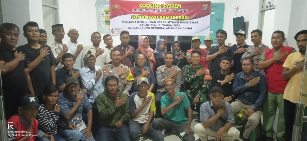 Dihadapan elemen masyarakat Kelurahan Sawah Lama, Kasat Binmas Polresta Bandar Lampung AKP Kurmen Rubiyanto menjelaskan bahwa Pemilihan umum yang damai adalah fondasi penting bagi keberlangsungan demokrasi yang stabil dan berkelanjutan.
