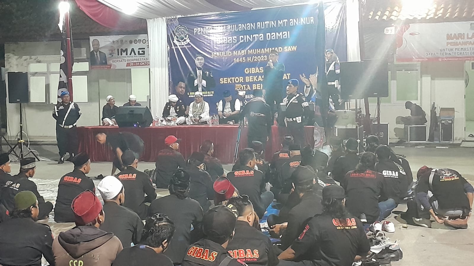 Reportika.co.id || Kota Bekasi – Ormas Gibas Kota Bekasi adakan pengajian rutin bulanan dan sekaligus maulid nabi Muhammad SAW yang ke 10 di Sektor Bekasi Barat yang bertempat di halaman Kelurahan Jakasampurna, Selasa malam (31/10/2023).
