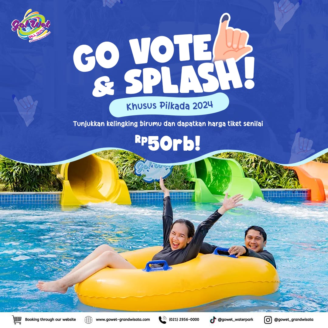 Khusus di hari Pilkada, nikmati beragam aktivitas seru dengan harga spesial di Go! Wet Waterpark! Ajak keluarga, saudara, dan teman-teman kamu untuk bermain air dan berekreasi bersama🤍