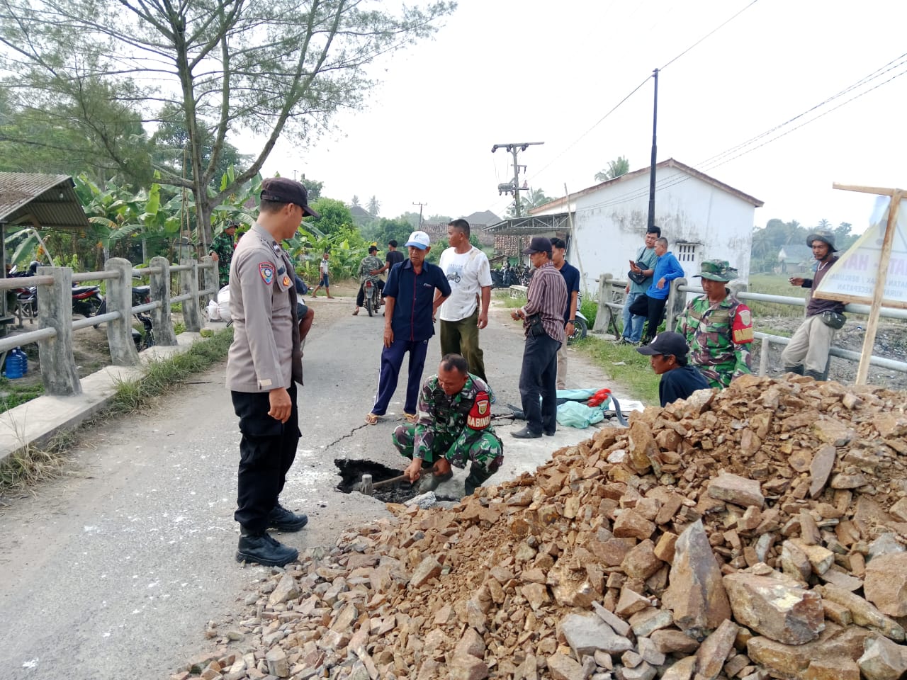 Reportika.co.id || Lampung Selatan, Lampung – Untuk menghindari kecelakaan pengguna jalan, Forkopimcam Kecamatan Sragi Kabupaten Lampung Selatan beserta masyarakat Desa Baktirasa dan Babinsa Koramil 0421/08 Palas, serta Bhabinkamtibmas Polsek Sragi melakukan gotong royong menimbun jembatan yang ambrol dimakan usia