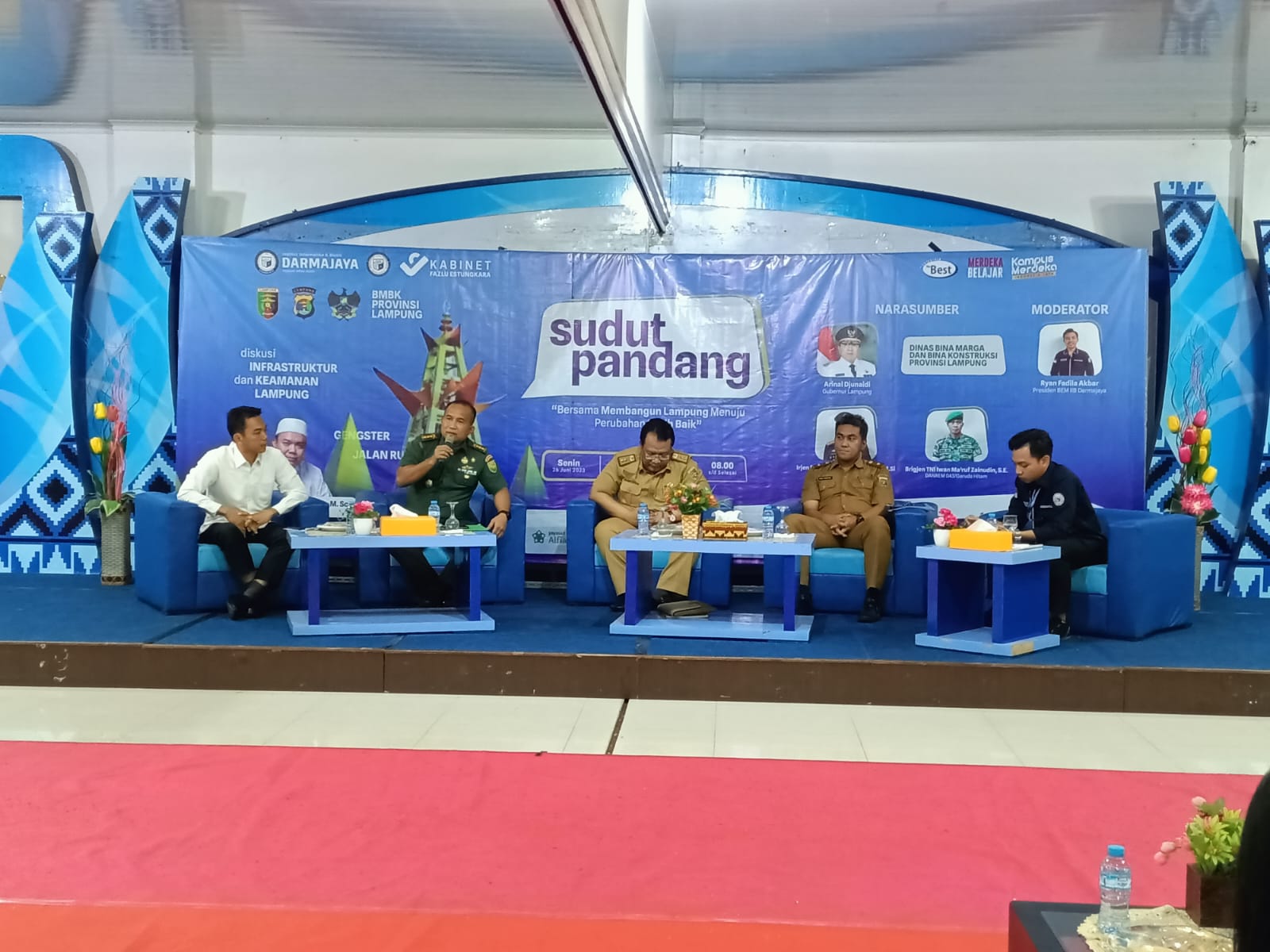 Reportika.co.id || Lampung – Bertempat di Gedung Aula Rektorat Lantai 3 IIB Darmajaya Lampung. Jl. ZA. Pagar Alam Gedong Meneng, Bandar Lampung, Kasiter Kasrem 043/Gatam hadiri diskusi tentang Infrastruktur dan keamanan Lampung, yang diselenggarakan Kampus IIB Darmajaya Lampung. Senin (26/6/2023).
