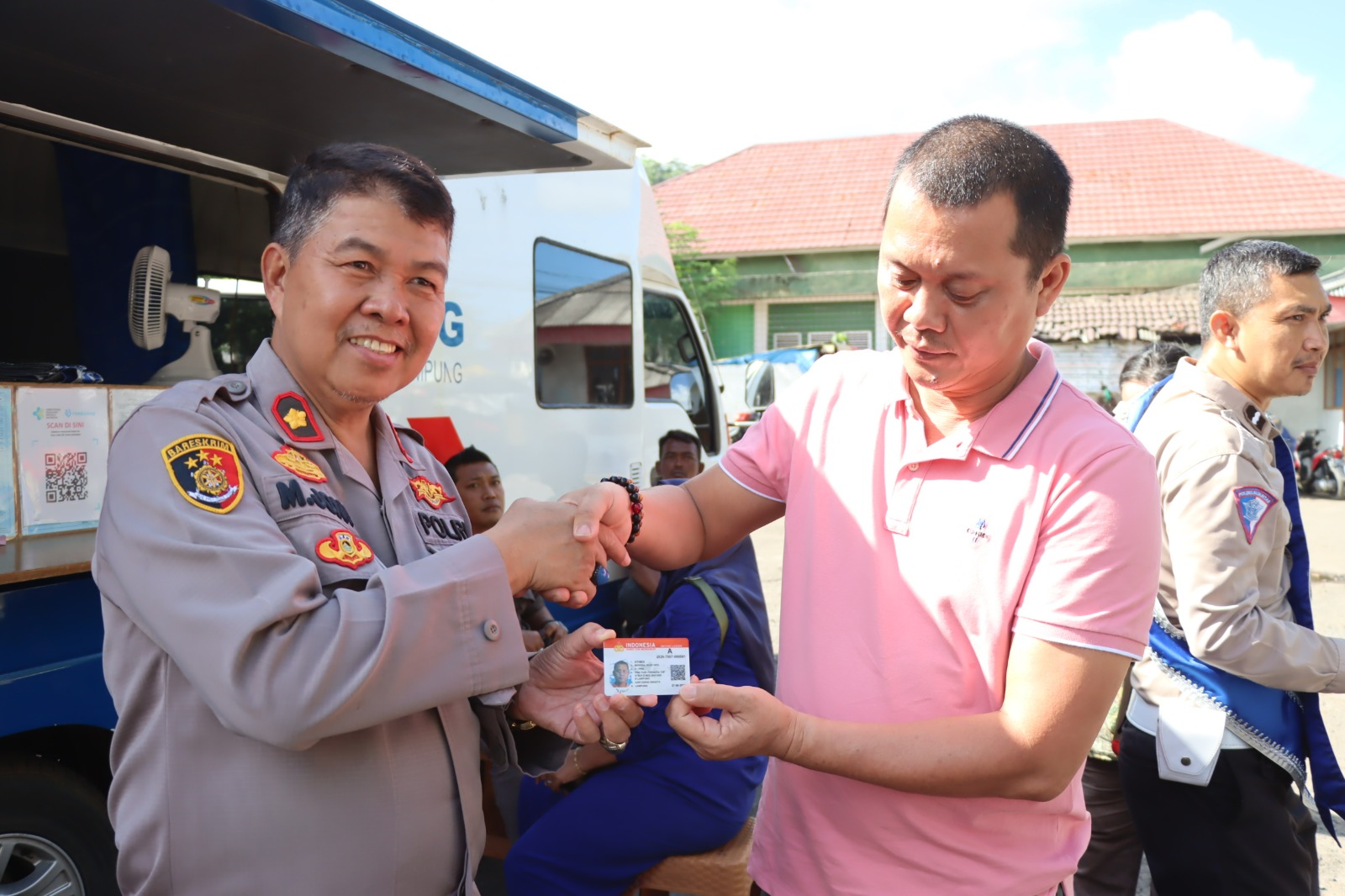 Eko salah satu warga Kelurahan Pidada Panjang, yang datang untuk melakukan perpanjang SIM, mengaku senang dan merasa terbantu dengan adanya kegiatan ini.