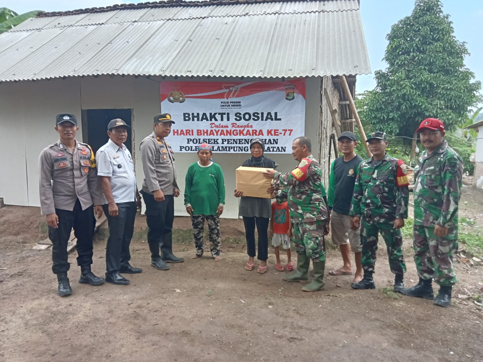 Reportika.co.id || Lampung Selatan – Dalam rangka hari Bhayangkara ke-77 Polsek Penengahan bersama Koramil 421-03/Pnh, bantu warga dan berikan sembako sebagai wujud peduli sesama di Desa Karang Sari Kecamatan Penengahan, Kabupaten Lampung Selatan. Kamis, 15/06/2023.