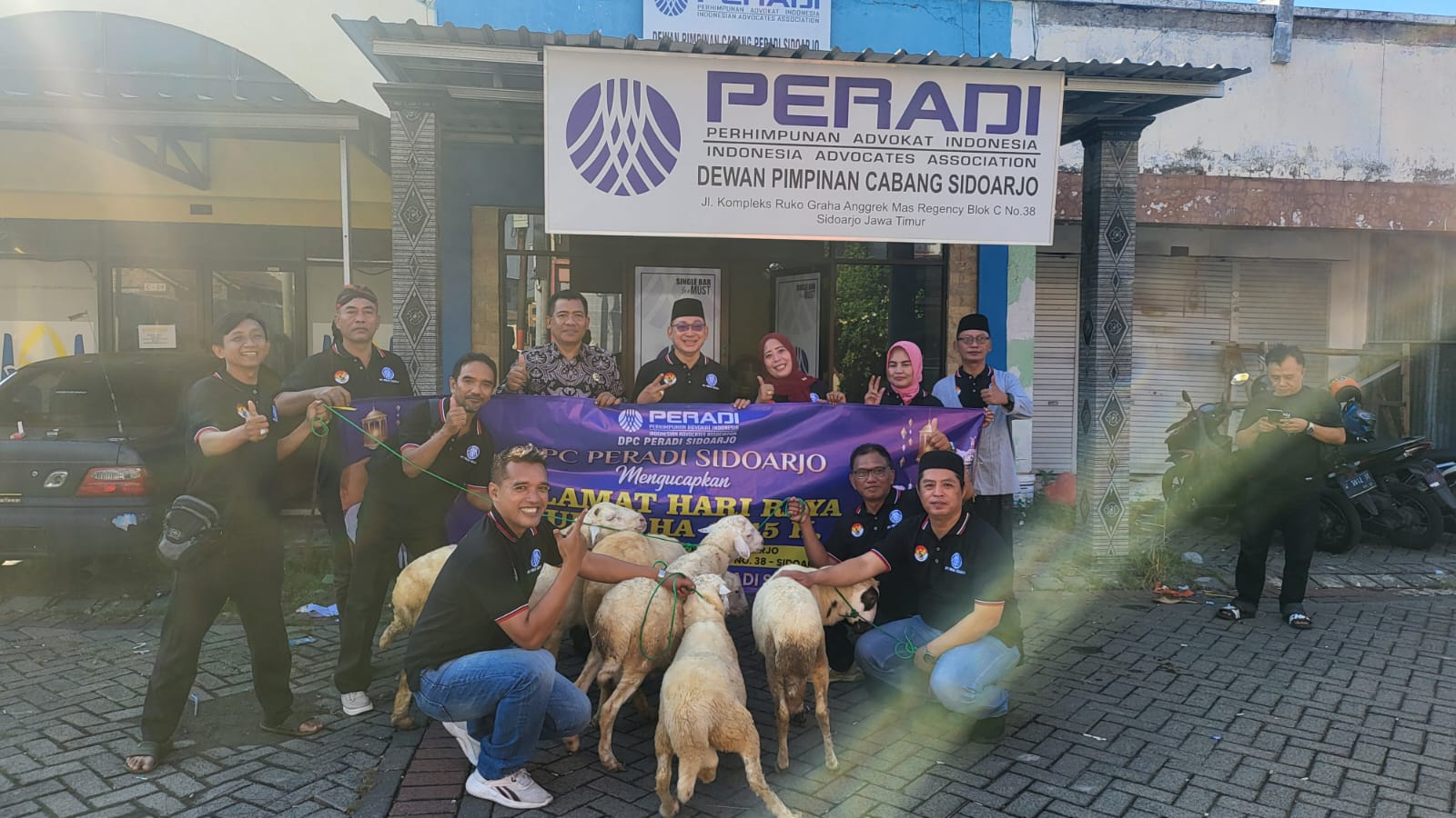 “Dan Alhamdulillahi robbil’alamin, DPC Peradi Sidoarjo dapat mewujudkan semangat itu dengan berbagi hewan kurban berupa kambing sebanyak 5 ekor kepada masyarakat sekitar Kantor DPC Peradi Sidoarjo ini, tahun ini ada peningkatan jumlah hewan kurban dibandingkan tahun sebelumnya,” ucapnya.