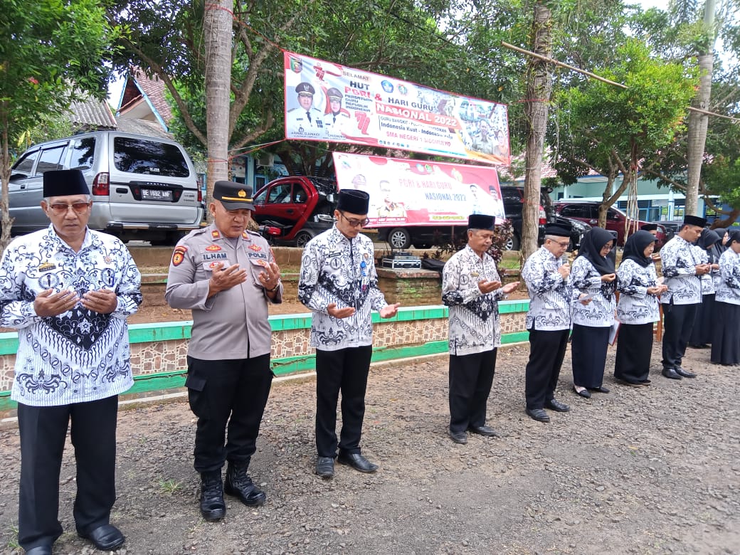 Reportika.co.id || Sidomulyo, Lampung Selatan – Kapolsek Sidomulyo Iptu Ilham Effendi mengikuti kegiatan Upacara Hari Ulang Tahun PGRI ke-77 dan Hari Guru Tahun 2022 se-Kecamatan Sidomulyo Lampung Selatan di Lapangan Upacara SMAN 1 Sidomulyo. Sabtu, 26/11/2022