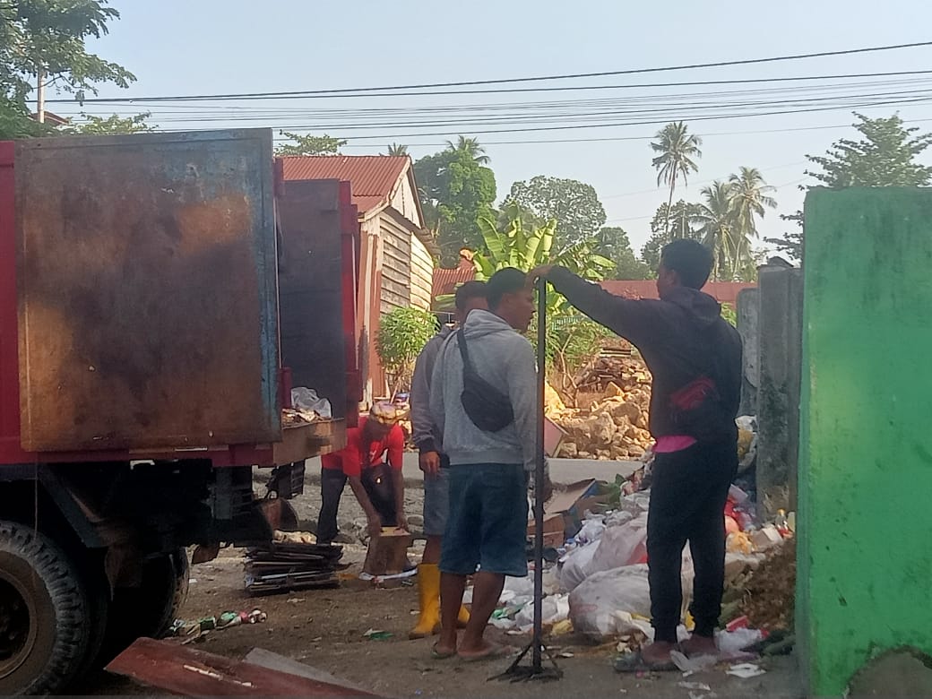 Ditempat terpisah nampak terlihat Semangat juang pengangkut sampah membersikan bak penampungan disaksikan Baliho Pasangan Gubernur Sulteng ARIL (H. Anwar Hafid bersama Reni Lamadjido).