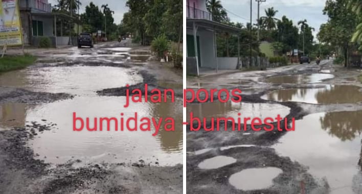 Musim penghujan seperti saat ini, kondisinya lebih memprihatinkan, di sepanjang jalan di genangi air bak kubangan kerbau, namun pemerintah seakan tidak menghiraukan kondisi jalan tersebut membuat masyarakat kecewa dan ramai-ramai memosting kondisi jalan ke medsos.