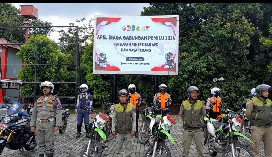 Reportika.co.id || Kota Bekasi – Menuju hari tenang masa kampanye pemilu 2024, pemerintah Kota Bekasi bersama Forkopimda menggelar Apel Gabungan Pemilu 2024, dan Persiapan Penertiban APK pada saat masa tenang yang dilaksanakan di Lapangan Plaza Pemkot Bekasi, Rabu (07/02/2024).
