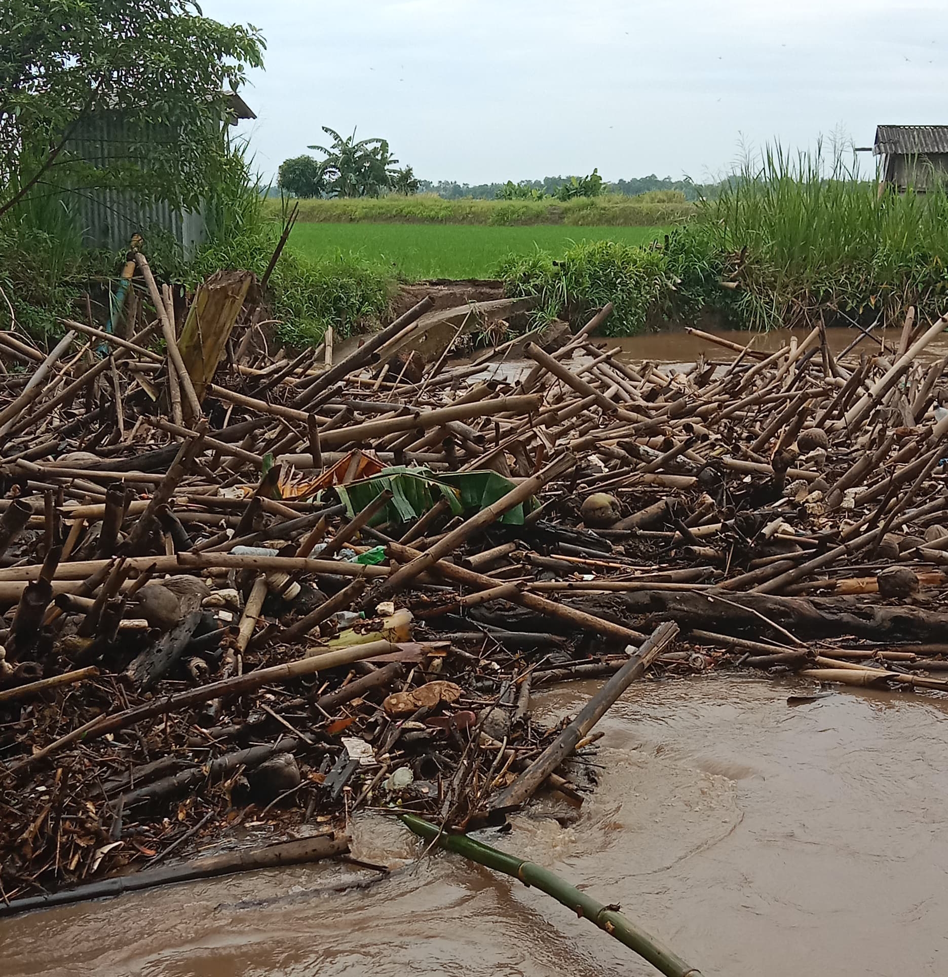 Iskandar, selaku Ketua Gapoktan Sek Hasan, membenarkan peristiwa tersebut. Ia mengaku menerima informasi sekitar pukul 10.30 WIB bahwa jembatan di Dusun 1 Desa Palas Aji ambruk akibat tumpukan sampah kiriman dari hulu sungai.