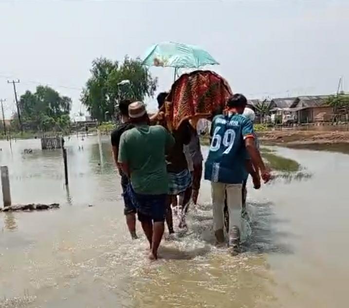 Jenazah Diarak Menembus Banjir, Rob Parah Lumpuhkan Kecamatan Muara Gembong