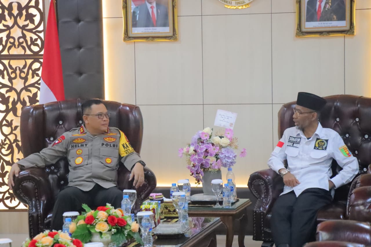 Pertemuan Kapolda Lampung Irjen Pol Helmy Santika S.H ,S.Ik,M.Si dalam kunjungan dan audiensi anggota DPD RI KH.Ir.Abdul Hakim,MM Perwakilan Provinsi Lampung di ruang kerja Kapolda Lampung, Lampung Selatan. Kamis (27/04/2023)
