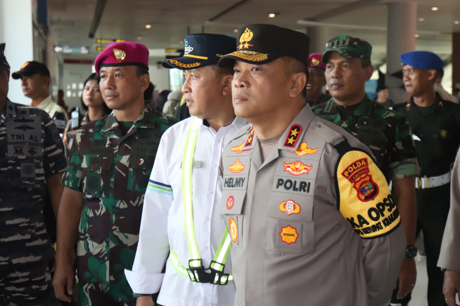 Reportika.co.id || Lampung Selatan, Lampung – Kapolda Lampung Inspektur Jenderal (Irjen) Helmy Santika Bersama forkopimda Provinsi Lampung Kunjungi Pelabuhan Bakauheni Lampung meninjau Arus Balik Angkutan Lebaran 1445 H di Pelabuhan Bakauheni. Senin, 15 April 2024 sekira pukul 14.00 WIB.