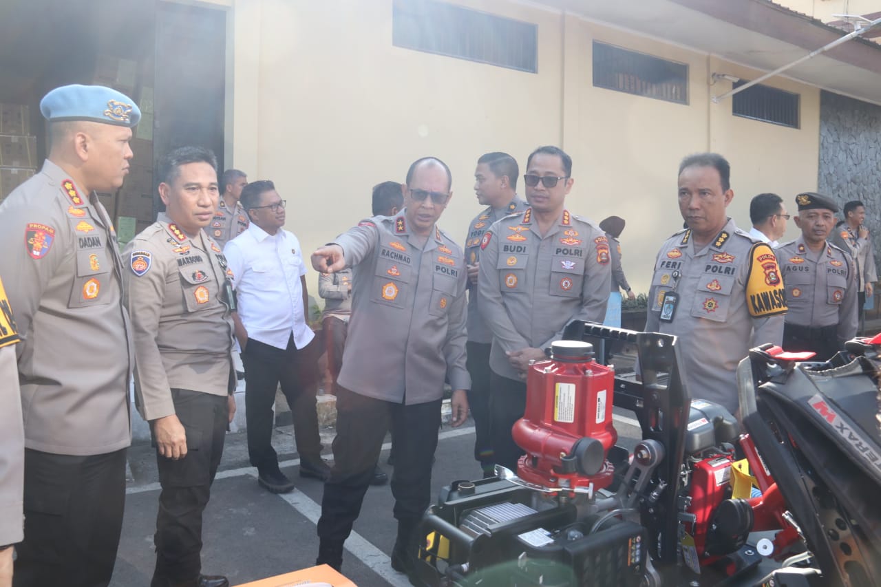 Reportika.co.id || Palembang, Sumsel – Kapolda Sumsel Irjen Pol. A. Rachmad Wibowo, S.I.K. melakukan pengecekan peralatan penanggulangan kebakaran hutan dan lahan (karhutla) di Gudang Logistik Mapolda Sumsel pada Rabu (24/7). Kegiatan ini dimulai pukul 08.30 WIB dan dihadiri oleh sejumlah pejabat utama dan personel Polda Sumsel.
