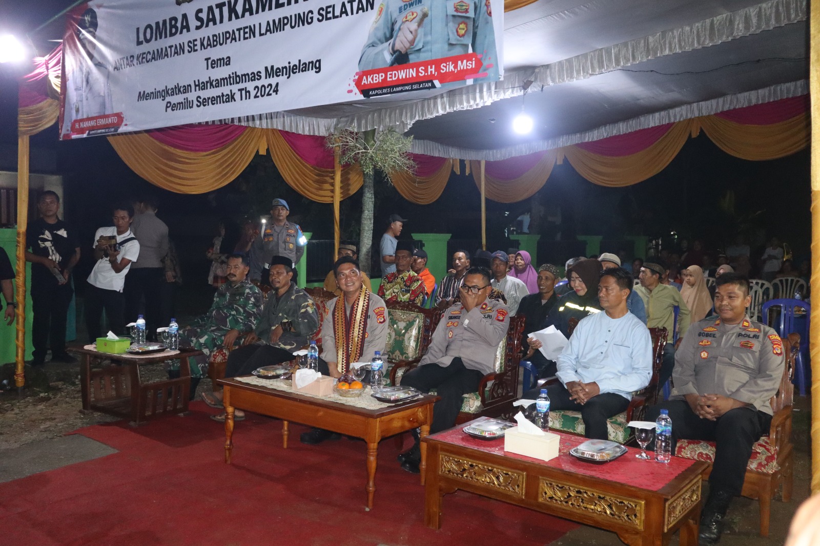 Memasuki hari kelima perlombaan, Kapolres Lamsel AKBP Edwin meninjau Pos Satkamling yang terletak di Dusun Mekar Jaya, Desa Kelaten, Kecamatan Penengahan, Kamis (25/5/2023) malam.