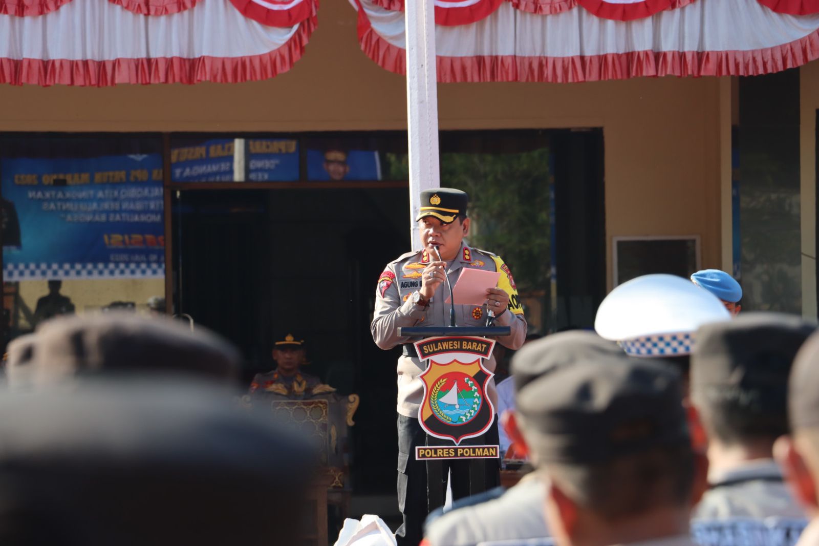 Reportika.co.id || Polman, Sulbar – Kapolres Polman AKBP Agung Budi Leksono selaku inspektur upacara gelar pasukan operasi patuh marano 2023 di Lapangan Apel Mapolres Polman Jl.Dr.ratulangi no.17 pekkabata, Senin (10/7/2023)