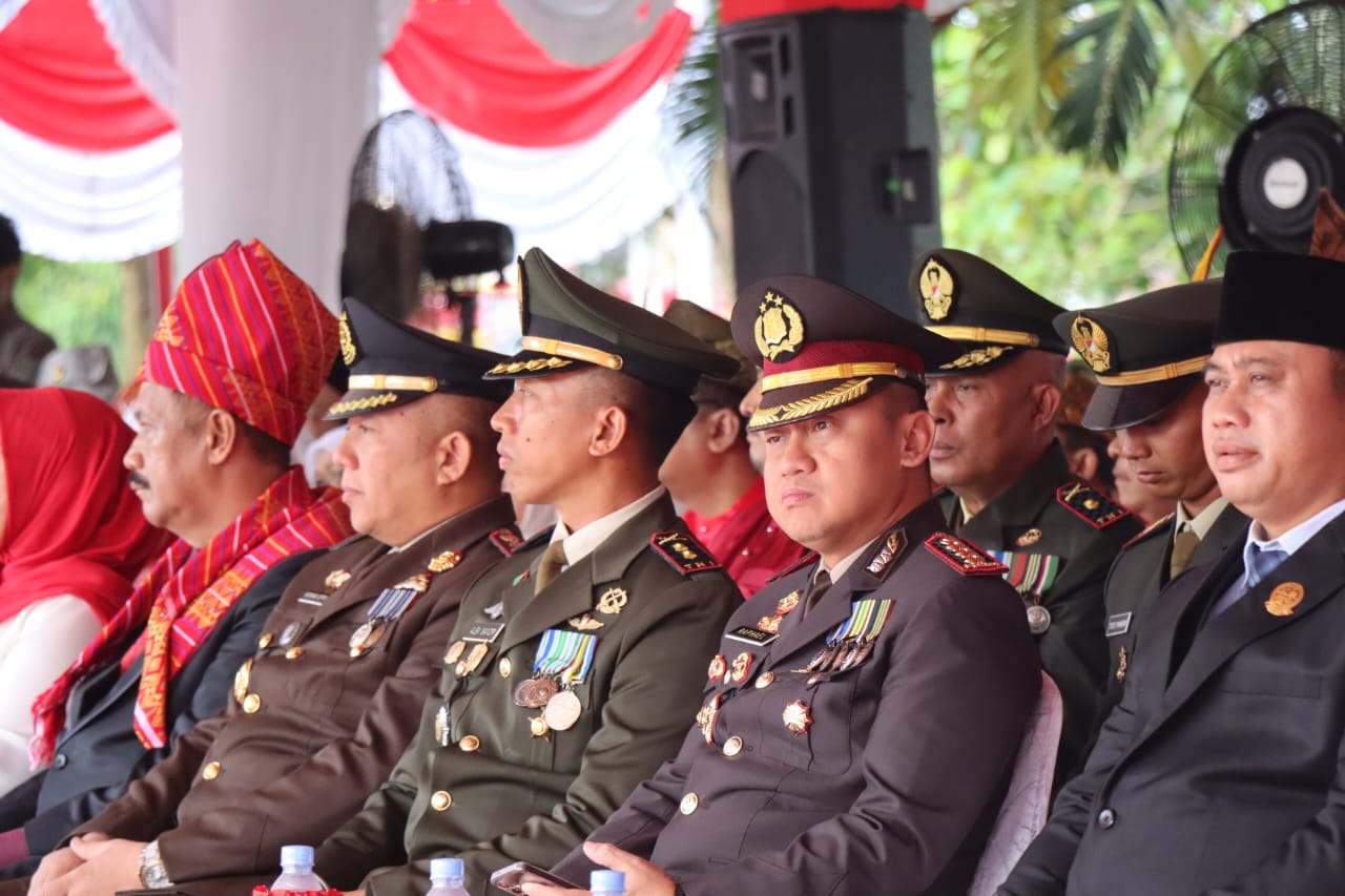 Reportika.co.id || Deli Serdang, Sumut – Kapolresta Deli Serdang, Kombes Pol Raphael Sandhy Cahya Priambodo SIK didampingi Ibu Ketua Bhayangkari Cabang Kota Deli Serdang Ny. Ine Raphael menghadiri Upacara Bendera dalam rangka memperingati Hari Kemerdekaan Republik Indonesia ke-79 di Alun Alun Pemkab Deli Serdang. Sabtu (17/08/2024)