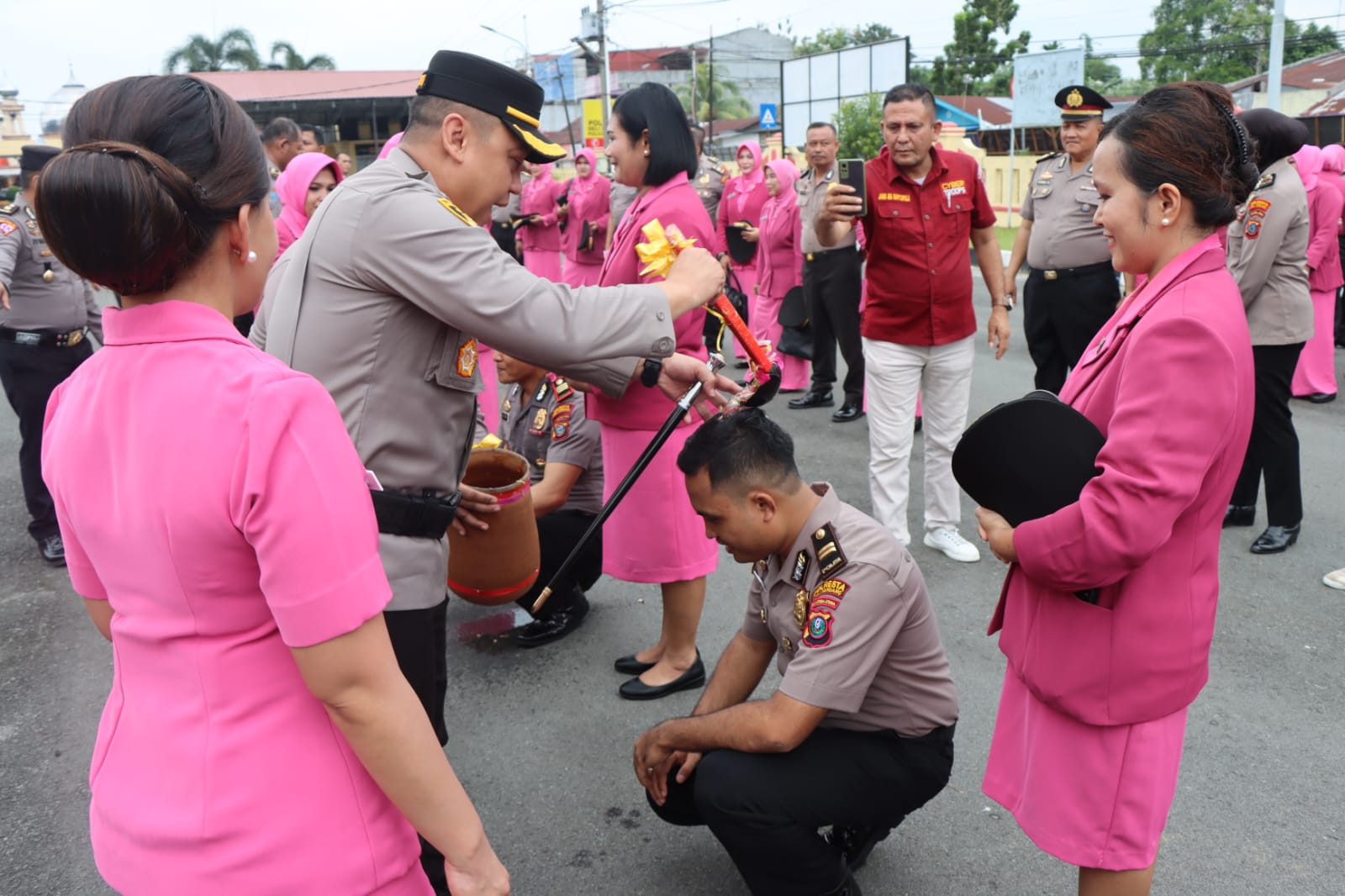 Secara simbolis dilakukan Tradisi penyiraman air kembang bunga kepada Personil yang mendapatkan kenaikan Pangkat, yang dipercayai agar Pangkat yang tercapai saat ini, maka kekurangan yang dahulu dapat luntur dan Personil lebih bersemangat dalam bertugas.