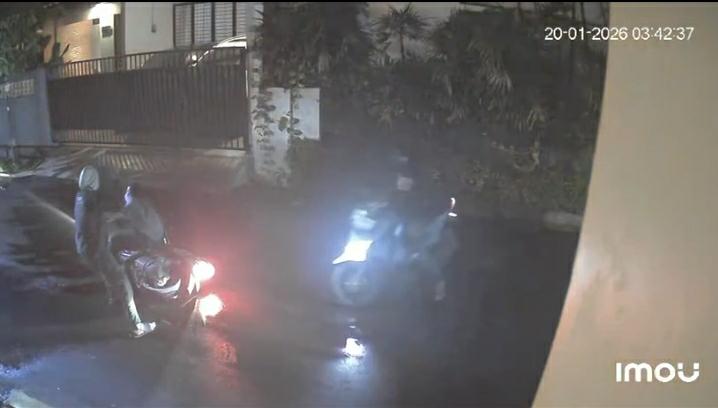 Dalam rekaman CCTV yang beredar, terlihat dua pelaku berboncengan menggunakan sepeda motor matik memepet korban. Salah satu pelaku mengacungkan senjata tajam sambil mengancam, hingga korban terjatuh dan terpaksa menyerahkan sepeda motornya demi menyelamatkan diri.