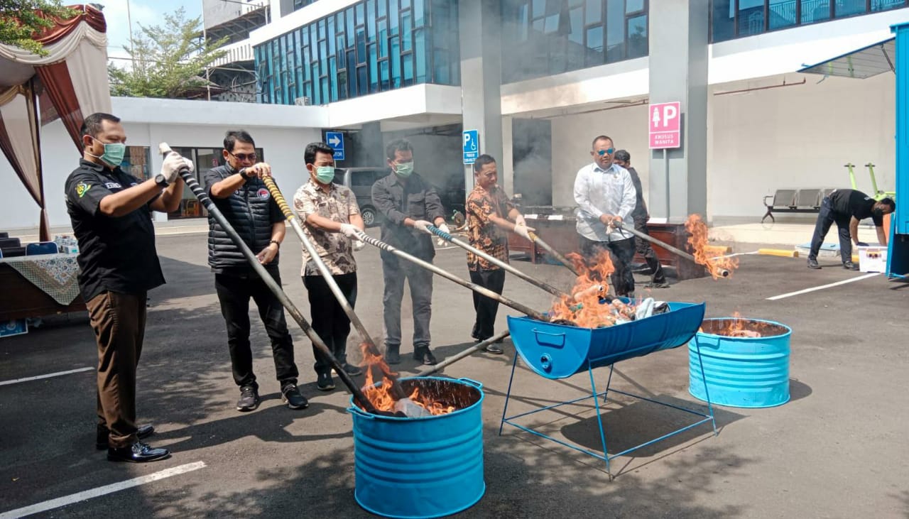 Pemusnahan tersebut dilakukan di halaman kantor Kejari Kota Bekasi Jalan Veteran I Kelurahan Marga Jaya Kecamatan Bekasi Selatan, Kota Bekasi Provinsi Jawa Barat.