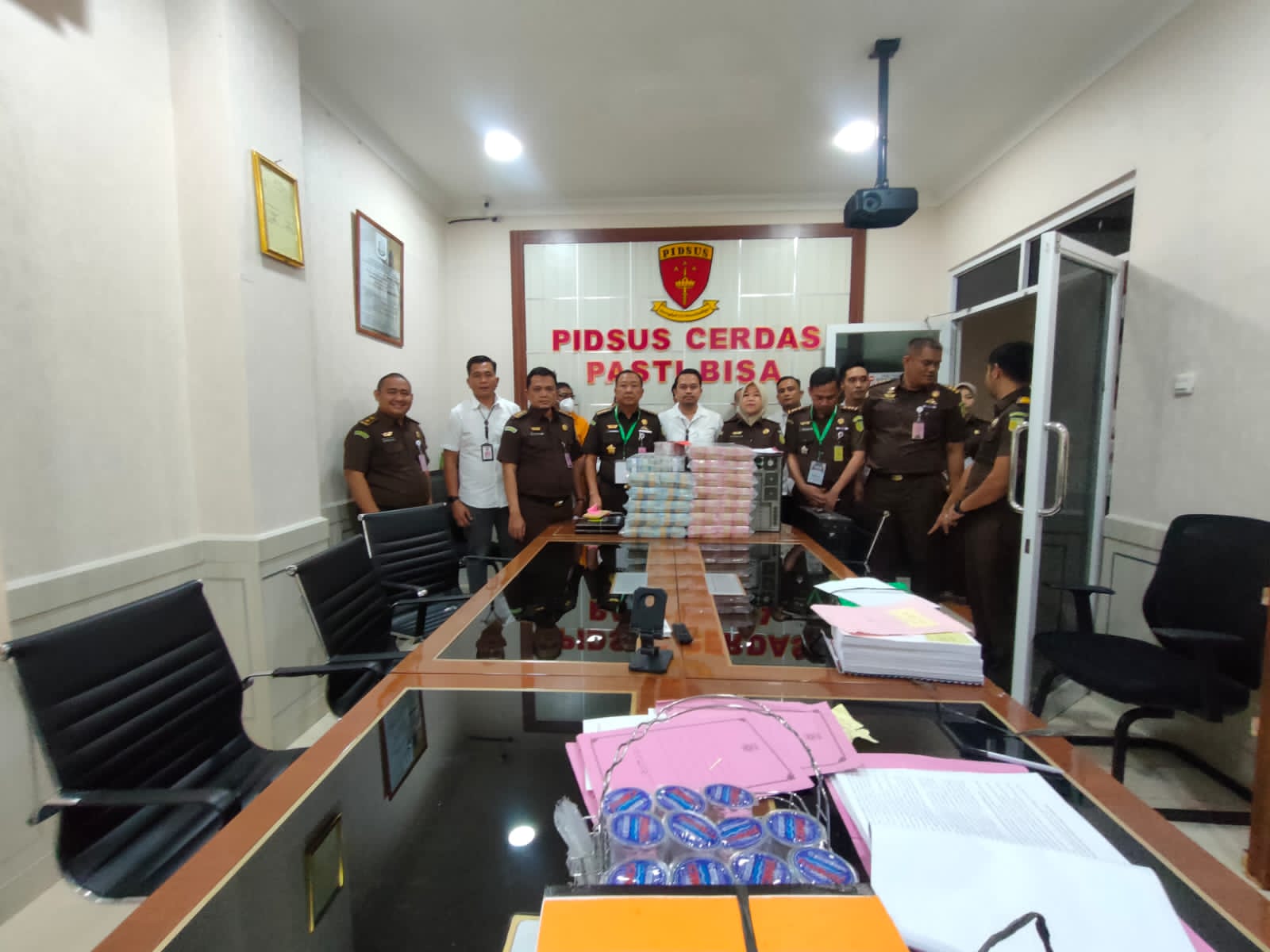 Penyerahan Barang Bukti berupa Uang Tunai Senilai Rp. 10.100.000.000,- (Sepuluh Miliyar Seratus Juta Rupiah) beserta Dokumen-dokumen pendukung lainya yang telah disita penyidik Polda Lampung telah diterima Satgas TIPIKOR Kejati Lampung.