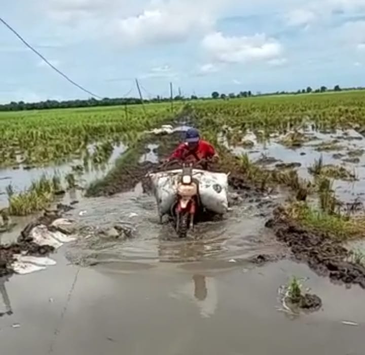 “Salah satunya di area persawahan ujung jami. Jalan tanggul tersiernya rusak parah sehingga motor susah masuk ke area persawahan. Tanggul utama juga becek, tapi tidak terlalu parah,” ungkapnya.