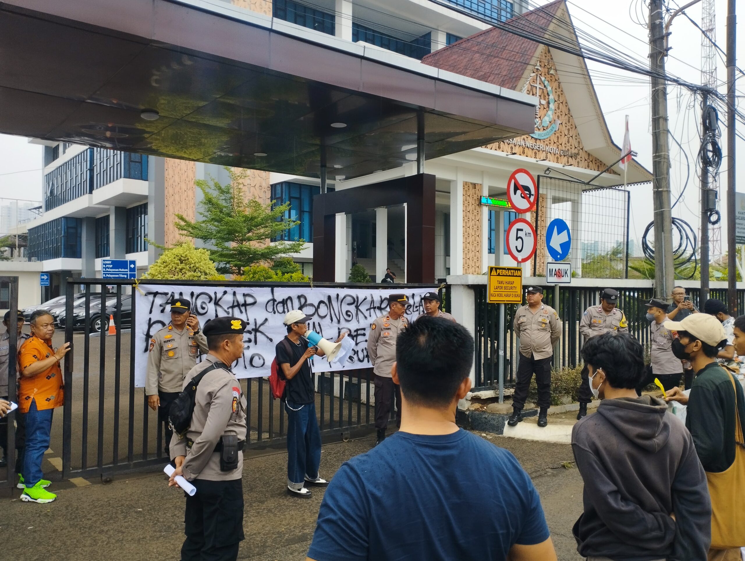 Reportika.co.id || Kota Bekasi – Massa aksi menamakan Barisan Muda Bekasi kembali berunjukrasa di depan Kantor Kejaksaan Negeri Bekasi, Jl. Pramuka Bekasi Selatan, Jumat (1/12/2023) siang. Mereka menuntut lembaga penegakan hukum tersebut mengusut kasus penyalahgunaan wewenang oknum pejabat dan pegawai Humas Pemerintah Kota Bekasi.