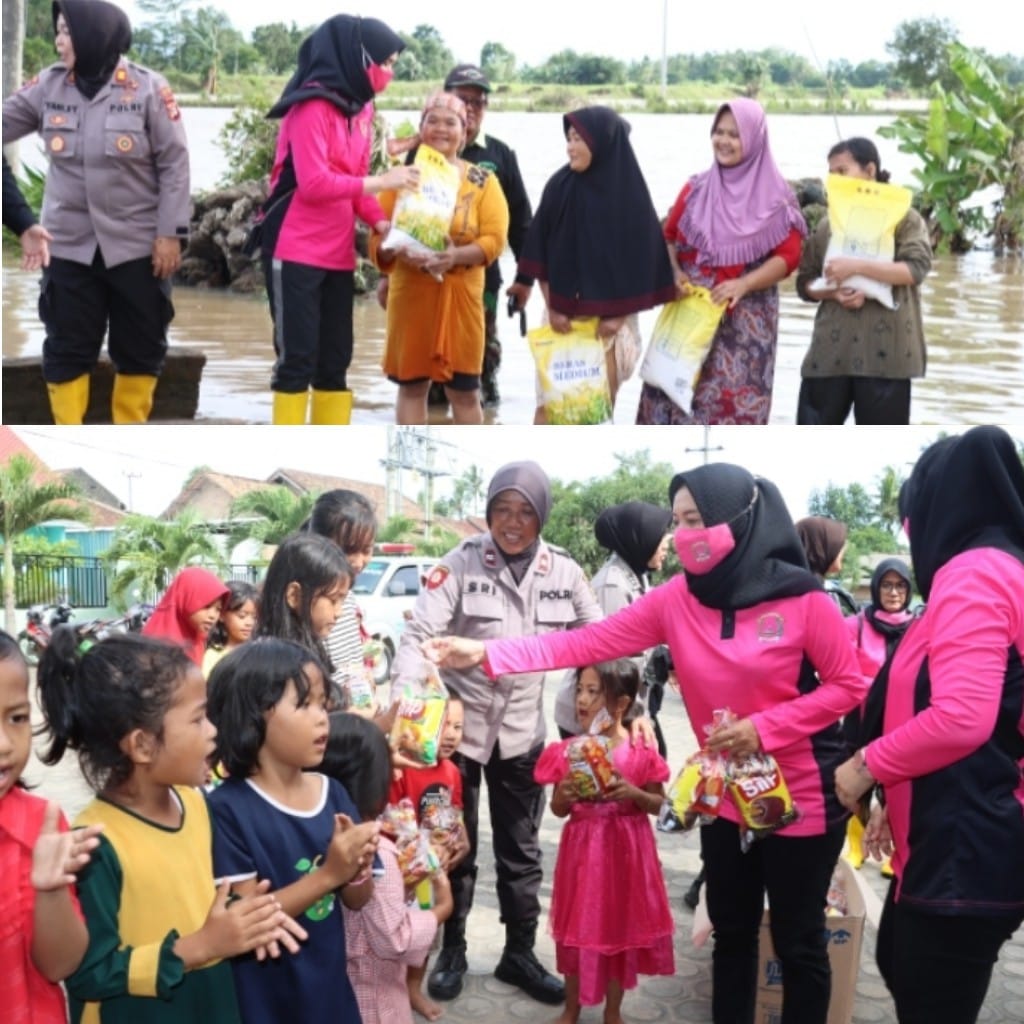 Aksi spontanitas dan rasa kepedulian yang tinggi, Bhayangkari Polres Lampung Selatan, Ny. Mariska Edwin Ketua Bhayangkari Cabang Lampung Selatan menuju ke lokasi dampak korban banjir yang terletak di Desa Bangumas, Desa Beringin Kencana dan Desa Sinar Pasemah.