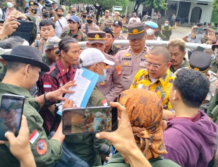 Reportika.co.id || Kota Bekasi – Ratusan masa aksi yang tergabung dari Aliansi Rakyat Bekasi (ARB) dan LSM Trinusa menggeruduk DPRD Kota Bekasi menuntut gunakan hak interpelasi kepada Plt. Wali Kota Bekasi Tri Adhianto yang disinyalir sudah melakukan kebijakan bersifat strategis.