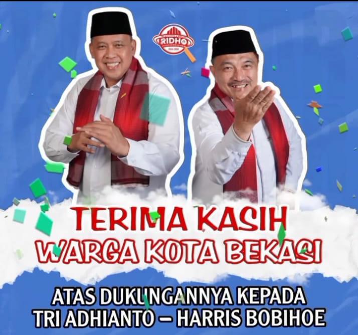 “Selamat kepada pasangan Tri-Harris. Semoga bisa merealisasikan janji kampanye untuk menjadikan Bekasi lebih maju dan sejahtera,” ujarnya.