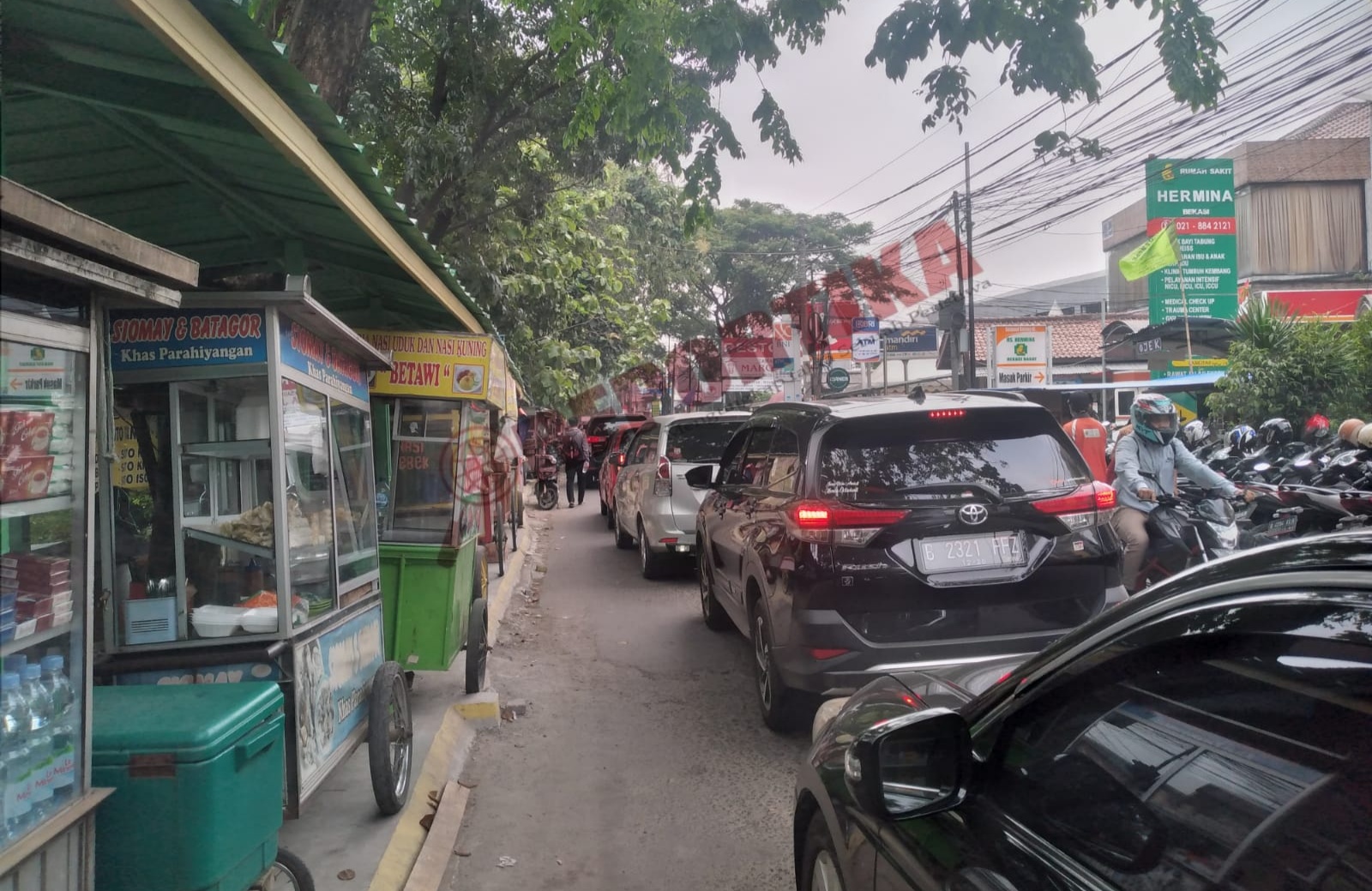 Reportika.co.id || Kota Bekasi – Kemacetan di sepanjang Jalan Kemakmuran, Kelurahan Margajaya menjadi dua arah dan di tambah kios yang berada di sepanjang sepadan kali juga parkir liar di depan rumah sakit hermina, Sabtu (27/08/2022).