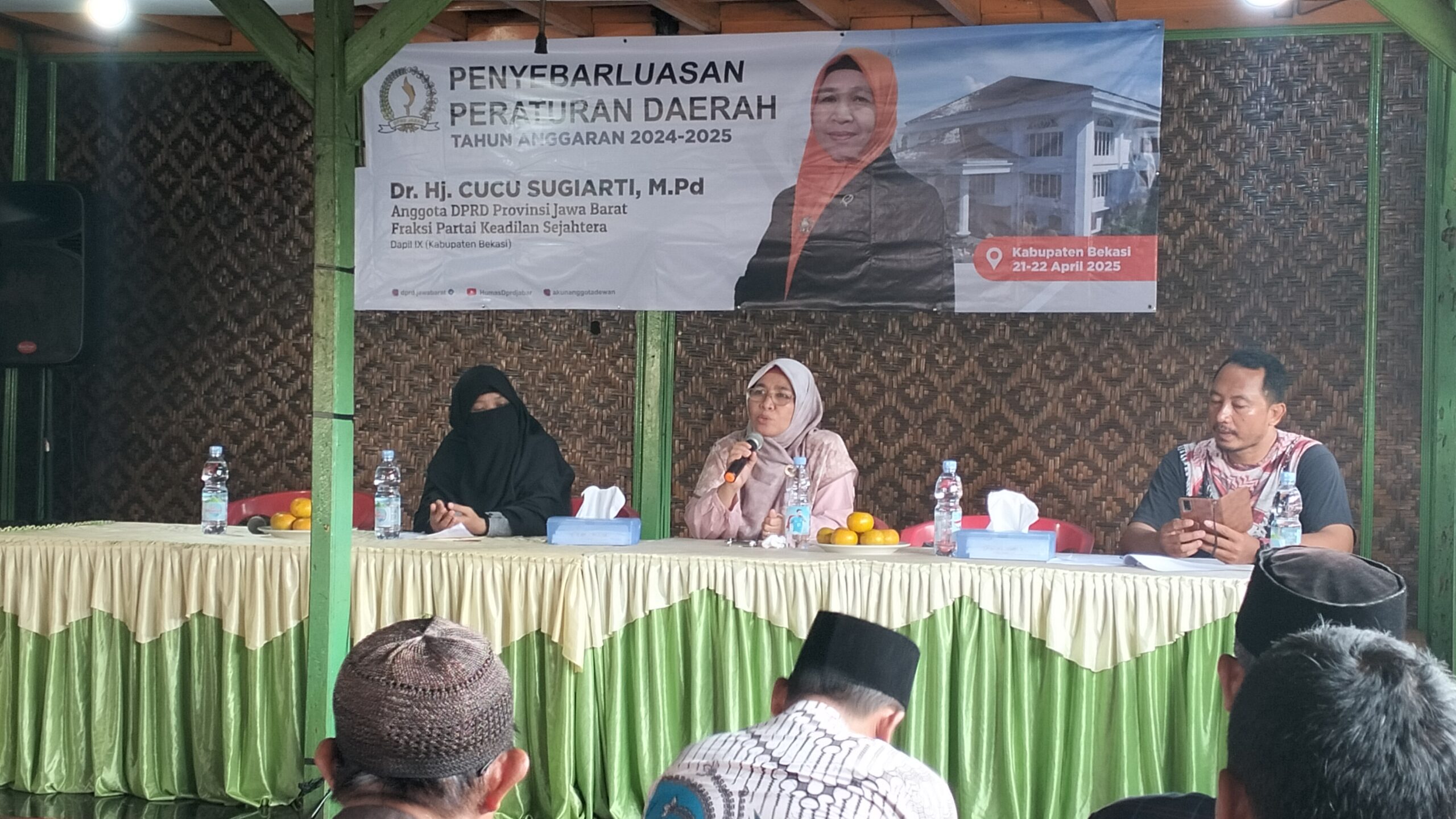 “Sesuai dengan undang-undang 1945, itu hak bagi semua masyarakat itu mendapatkan ya haknya, dengan kesejahteraannya, jadi itu pula yang menjadi payung hukum ketika Perda ini dicetuskan, dan kami perlu anggota dewan itu menyampaikan kepada masyarakat,” jelas Cucu.