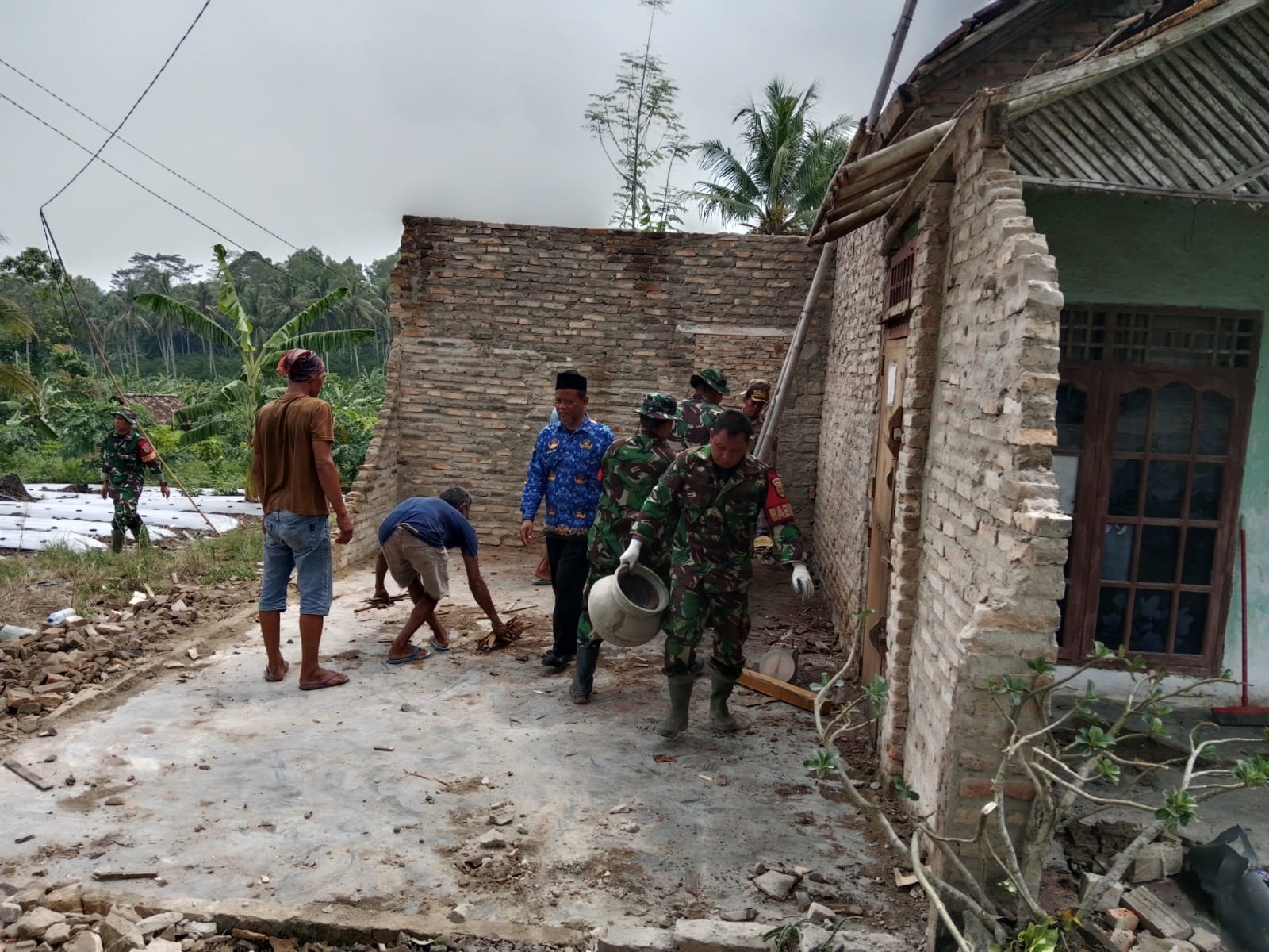 Koramil 0421/08 Palas Bantu Perbaiki Rumah Warga Yang Rusak Akibat Puting Beliung
