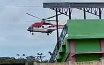Jokowi didampingi Gubernur Jambi Al Haris langsung melakukan kunjungan kerja ke Kabupaten Merangin via udara dengan menggunakan helicopter puma dan mendarat di Stadiun KONI Bumi Masurai Merangin sekitar pukul 10.41 WIB.