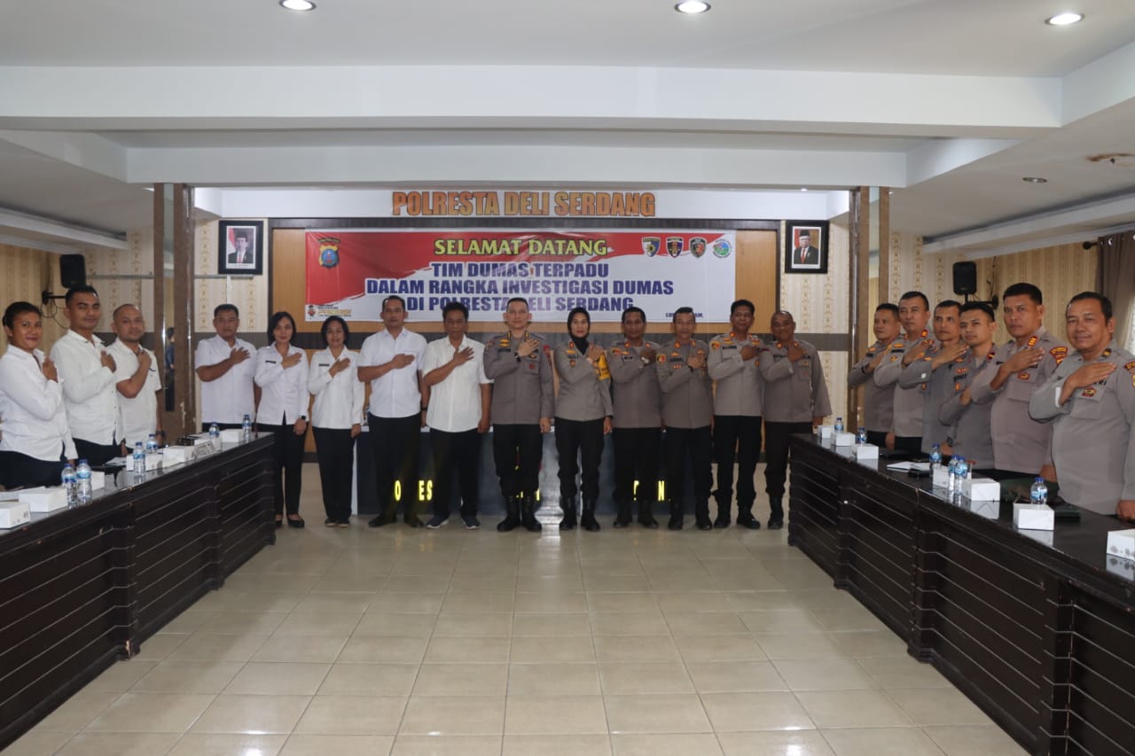 Kapolresta Deli Serdang Kombes Pol Raphael Sandhy Cahya Priambodo, SIK melalui Wakapolresta Deli Serdang AKBP Juliani Prihartini, SIK, MH dalam sambutannya mengucapkan terima kasih atas kunjungan Tim Investigasi Dumas Terpadu Polda Sumut ke Polresta Deli Serdang dalam rangka pelaksanaan investigasi dumas yang ada di Polresta Deli Serdang.