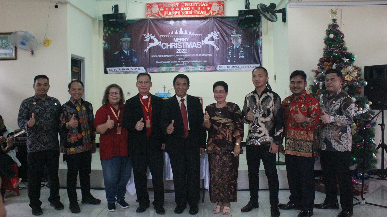 Reportika.co.id || Bekasi – Lembaga Permasyarakatan Kelas IIA Cikarang mengadakan Kegiatan Perayaan Natal Tahun 2022 yang dihadiri oleh Ev. Sutrisman beserta isteri serta choir dari Bimrohkris Ditjen PAS, jajaran Pejabat Struktural serta pegawai Lapas Cikarang dan para warga binaan yang beragama kristiani.