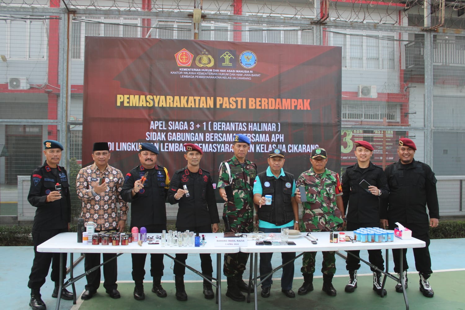 Reportika || Kab Bekasi – Apel siaga 3 + 1 untuk memberantas haliner dan Razia Serentak Blok Hunian di lakukan lapas kelas IIA Cikarang dengan menggandeng aparat penegak hukum