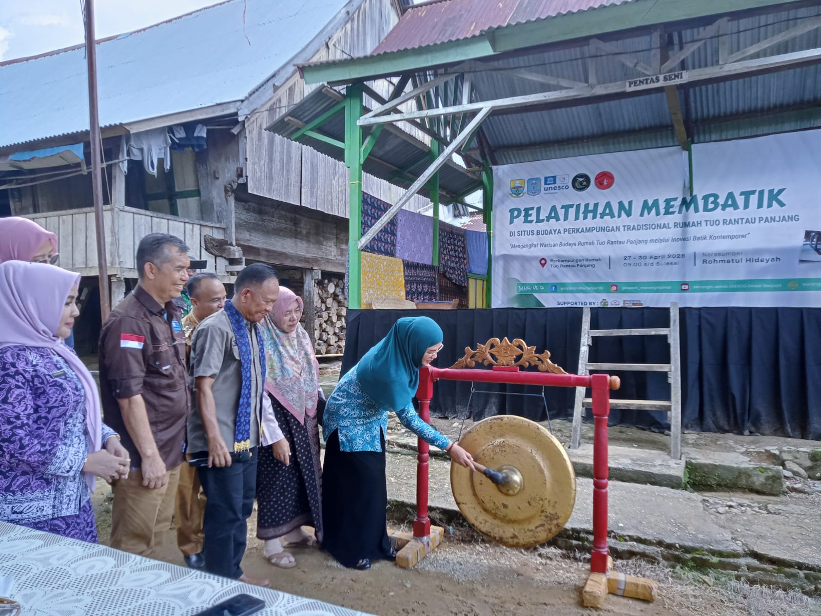 Reportika.id || Merangin, Jambi – Upaya pelestarian budaya lokal terus digalakkan di Kabupaten Merangin. Sanggar Seni dan Budaya Batin Penghulu, melalui dukungan dana Indonesiana Kementerian Kebudayaan, menggelar kegiatan pengembangan motif ukiran khas Rumah Tuo (tradisional) Merangin. Kegiatan berupa pelatihan membatik ini dilaksanakan di lokasi Situs Budaya Rumah Tuo Rantau Panjang, Kecamatan Tabir, pada Senin, 27 April 2026.