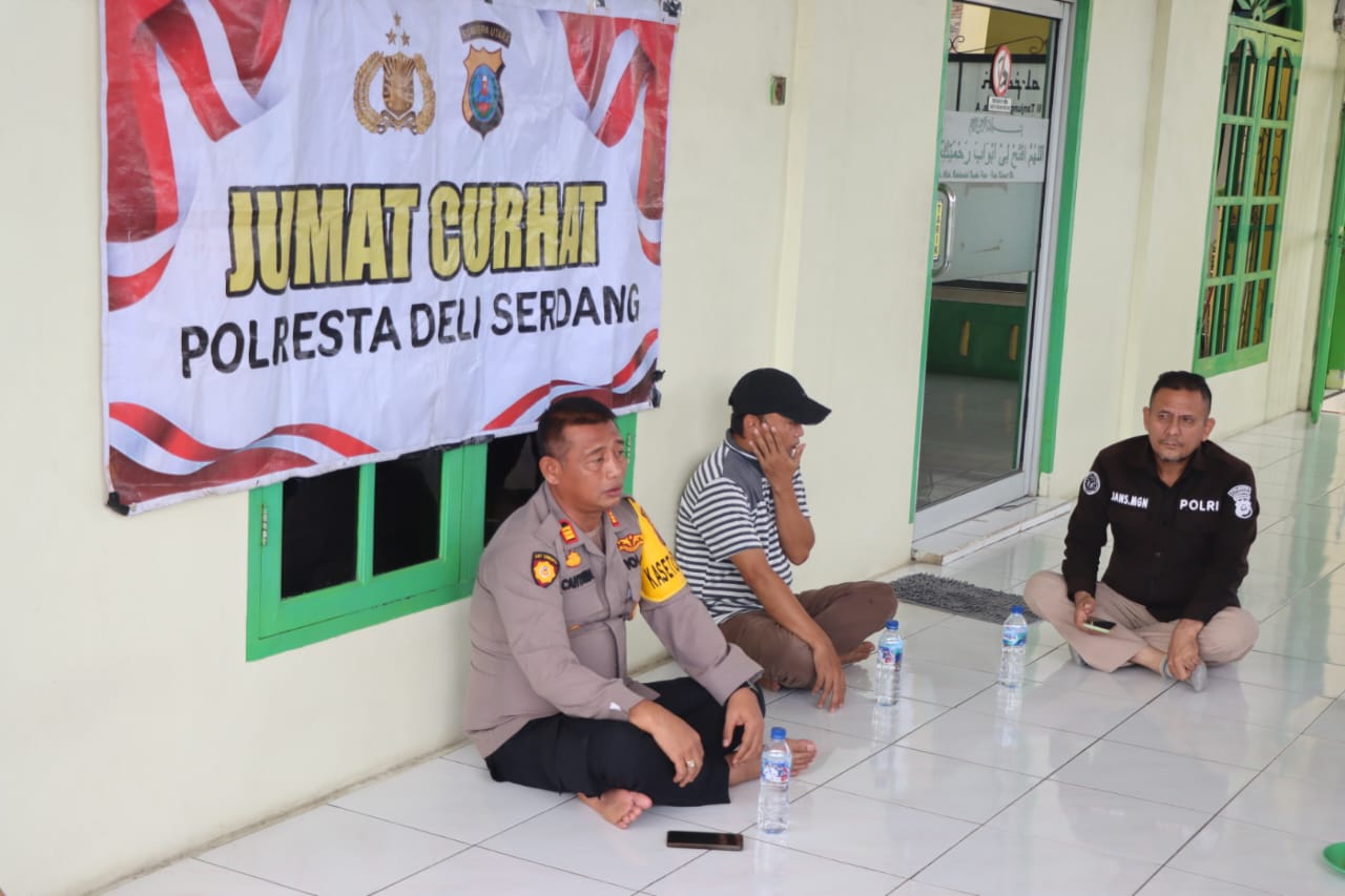 Reportika.co.id || Deli Serdang, Sumut – Polresta Deli Serdang kembali menggelar kegiatan yang sudah menjadi rutinitas setiap minggunya yakni kegiatan Jumat Curhat bersama masyarakat yang kali ini dilaksanakan di Masjid Al-Falah, Jln Tirta Deli Desa Tanjung Morawa A Kecamatan Tanjung Morawa Kabupaten Deli Serdang.