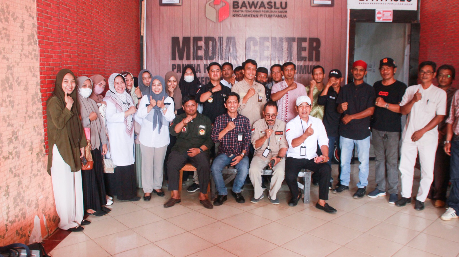 Ketua Komisioner Panwascam Pitumpanua Rustan SE yang juga Kordiv Sumber Daya Manusia, Organisasi, Data dan Informasi didampingi Hasmir, S.Pd.I Kordiv Hukum, Pencegahan, Partisipasi Masyarakat dan Humas bersama